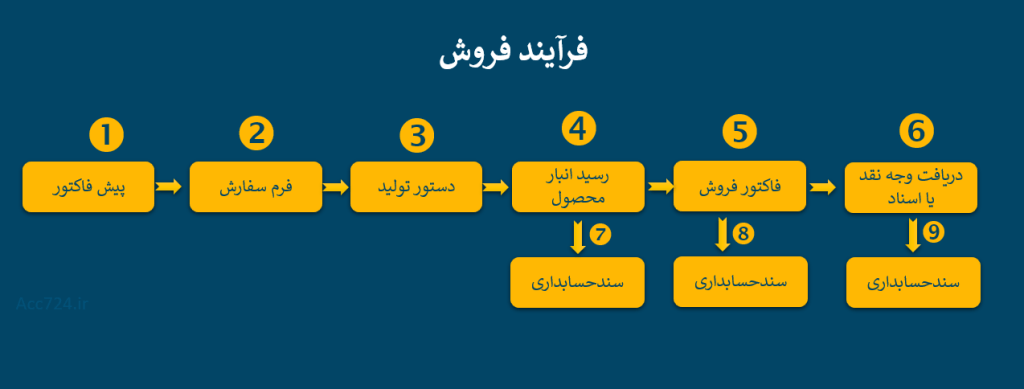 در هر شرکتی عملیات فروش دارای فرآیند خاص خود می باشد. بطور مثال در شرکت های بازرگانی که فعالیت اصلی آنها خرید کالا و فروش می باشد دارای پیچیدگی کمتری است و در مقابل در شرکت های تولیدی خصوصاً مجموعه هایی که تولید محصول سفارشی است، دارای فعالیت ها و کنترل های متعددی هستند.